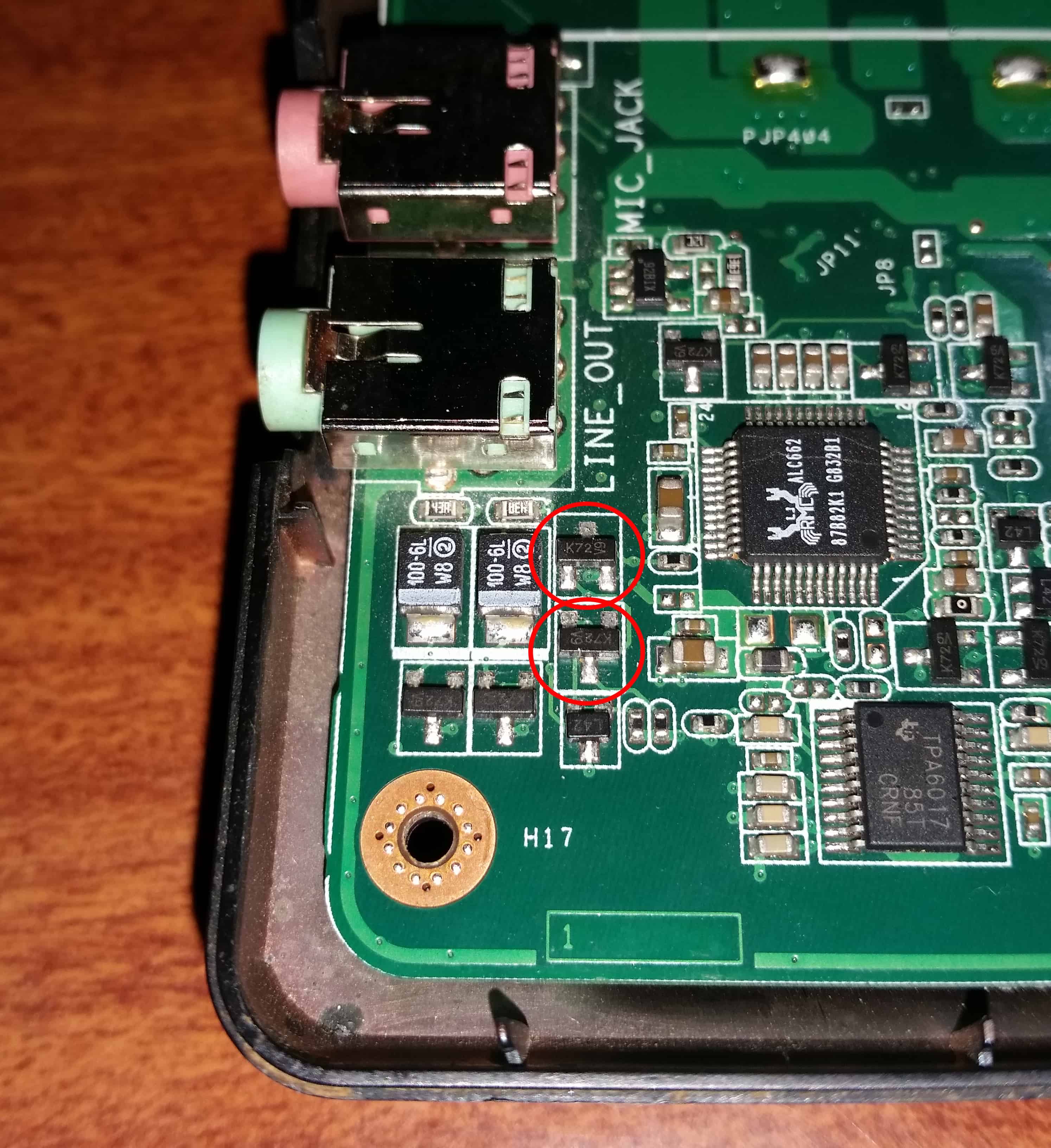 On the picture there are two transistors assigned with red circles. These are actually the switches that switch between the internal speakers and microphone or the external speakers and microphone. To be more precise, the upper transistor switch is for the speakers, and the one down is for the microphone.