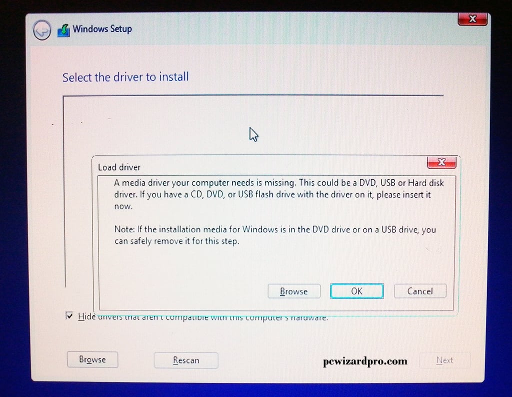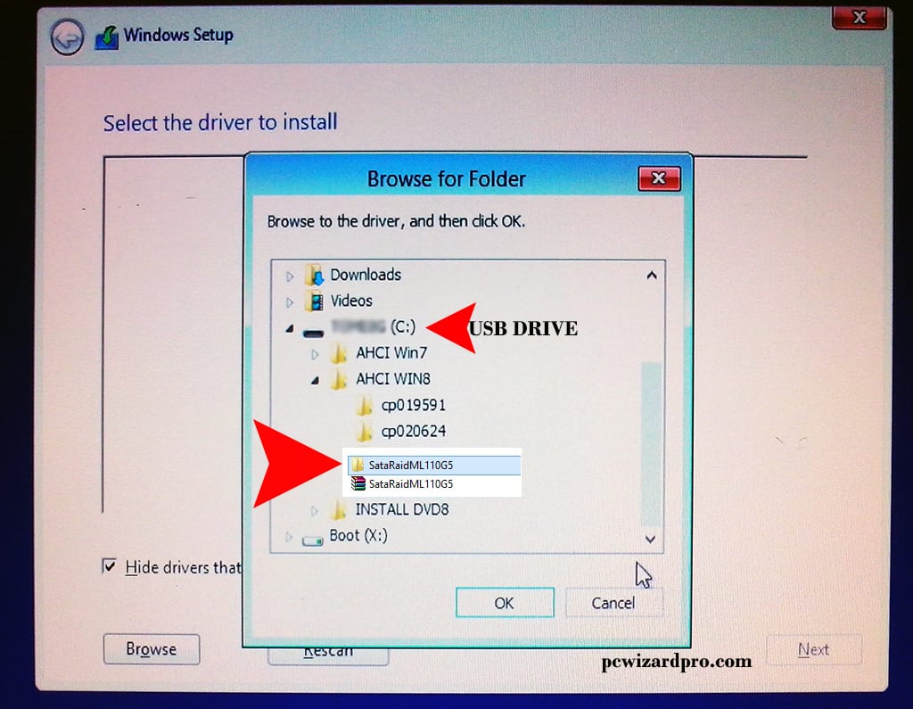 you need to insert the USB drive with AHCI driver and Click on Browse button to locate the driver path, as shown in the next picture: